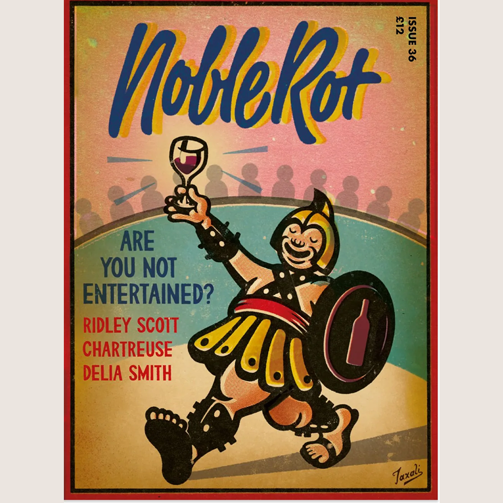 From the very first sip, dinner with this issue's special guest, Ridley Scott , was another trademark Noble Rot interview that ran to more than several glasses and some unearthed little-known insights. Responsible for some of the greatest films of all time – from Blade Runner and Thelma & Louise to Alien and Gladiator (the latter two of which we pay tribute to with this issue's special dual covers by Gary Taxoli ), Scott is also a wine lover who owns vineyards in Provence, and has a maverick perspective on everything from cooking the perfect scrambled eggs to how AI is changing the world. On the run up to the release of Gladiator II, with many new projects backed up, Noble Rot discovers what drives the 86 year old's relentless work ethic in 'Director's Cup'. And while we're on the subject of AI, sommeliers may like to hear that they've got little to fear from it stealing their jobs – at least if Hannah Crosbie's conversation with ChatGPT after asking it to mimic a quick-witted Noble Rot Lamb's Conduit St somm is anything to go by ('I Drink, Therefore I Am').