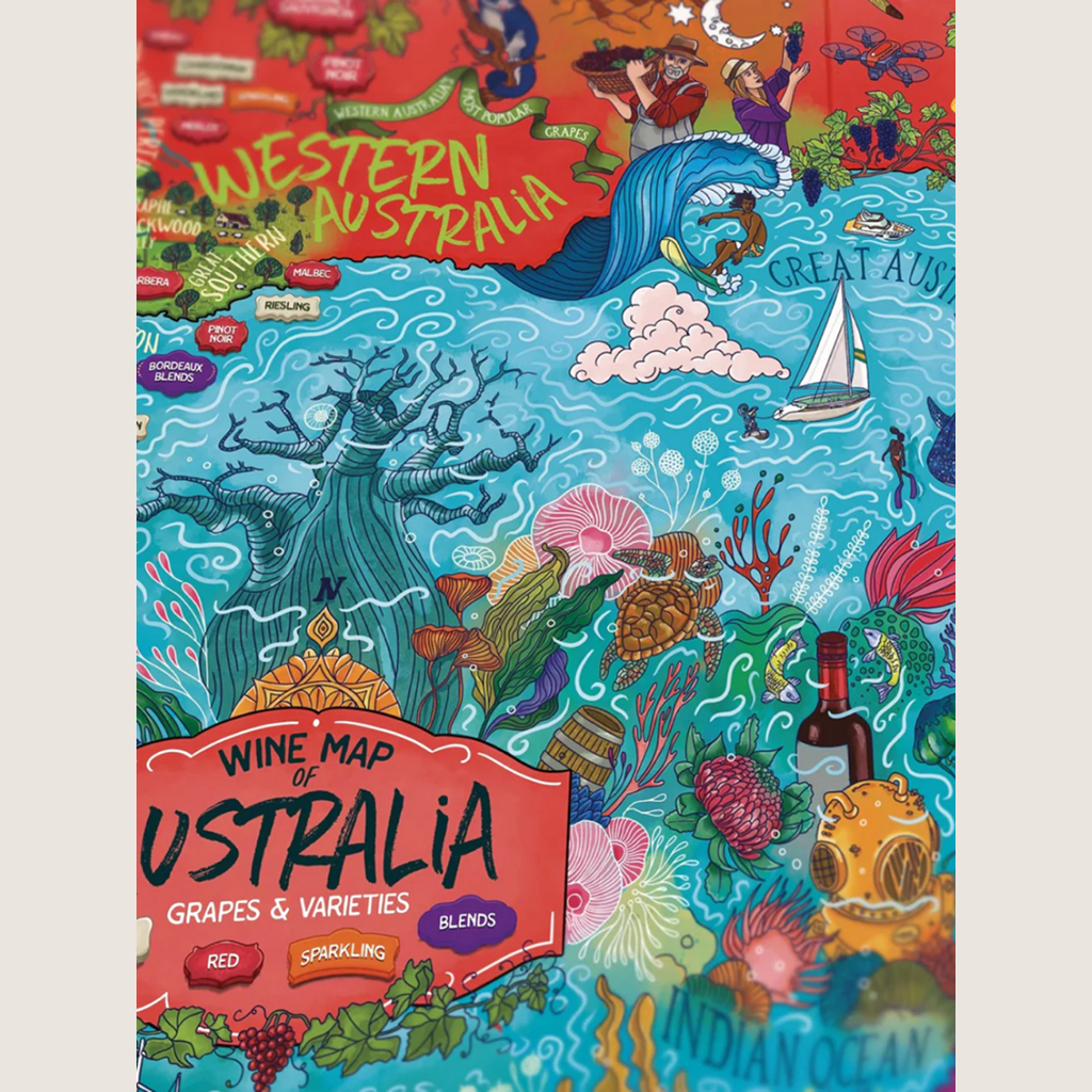 Discover the vibrant world of Australian wines with this magnificent addition to our collection. Famous for its Shiraz and Pinot Noir, the country is home to over 60 wine regions. Carefully designed by expert sommeliers and hand-illustrated, this puzzle highlights the main wine regions and local grape varieties, from the famous Barossa Valley to the cool Yarra Valley.