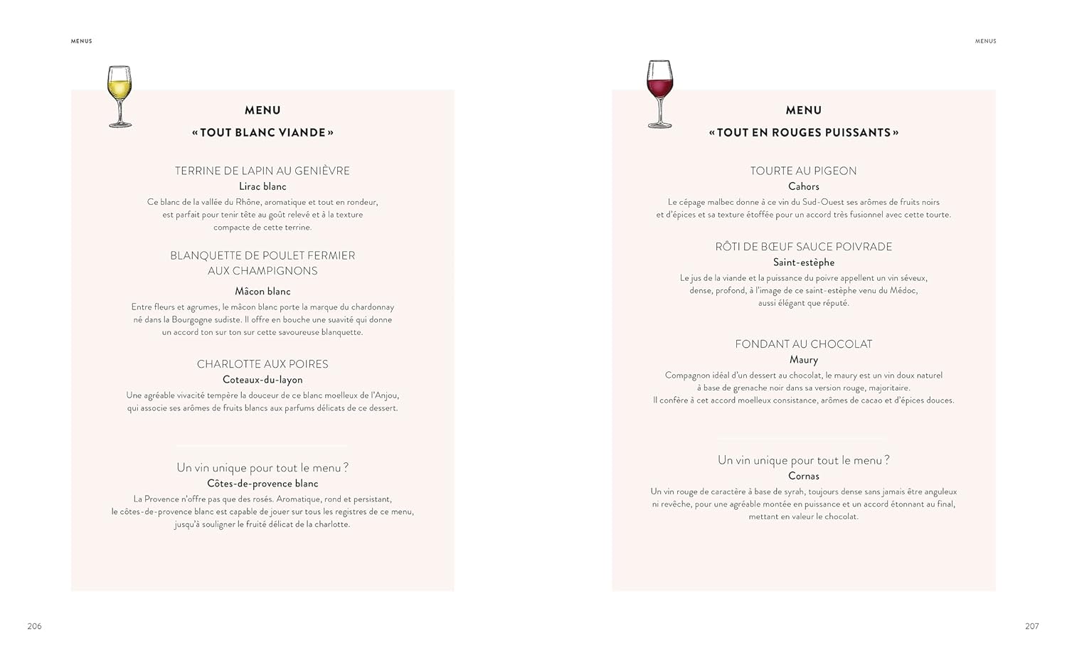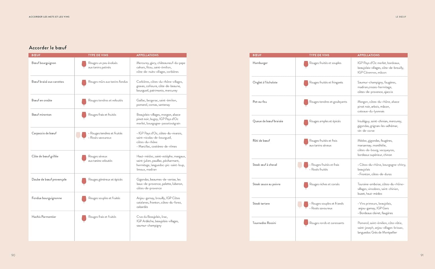 From aperitif to dessert, 2,500 pairings are explained according to cooking method, accompaniment, sauce, spices, etc. For each product family, a summary table allows easy identification.