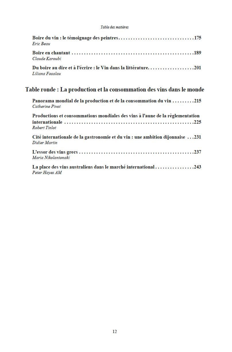 The first part of the work, entitled “The winegrower and his vineyard, towards a diaspora of vines and wine” proposes to follow, from Antiquity to the present day, from the Mounts of Lebanon to China via Bordeaux and Burgundy, the different actors in the construction and constant changes of the vitivinisphere, winegrowers or merchants, vineyard workers, producers or traders. The second part of the work “From wine food to wine flavor enhancer”, strives, using examples from philosophy, sociology, history, physico-chemistry or even history of the arts to identify this wine consumer in all his plurality. The third part of the volume returns to the present with the restitution of a round table on “The production and consumption of wines in the world”. A synthesis, supplemented by geographical examples, highlights numerous changes, initiated or already completed.