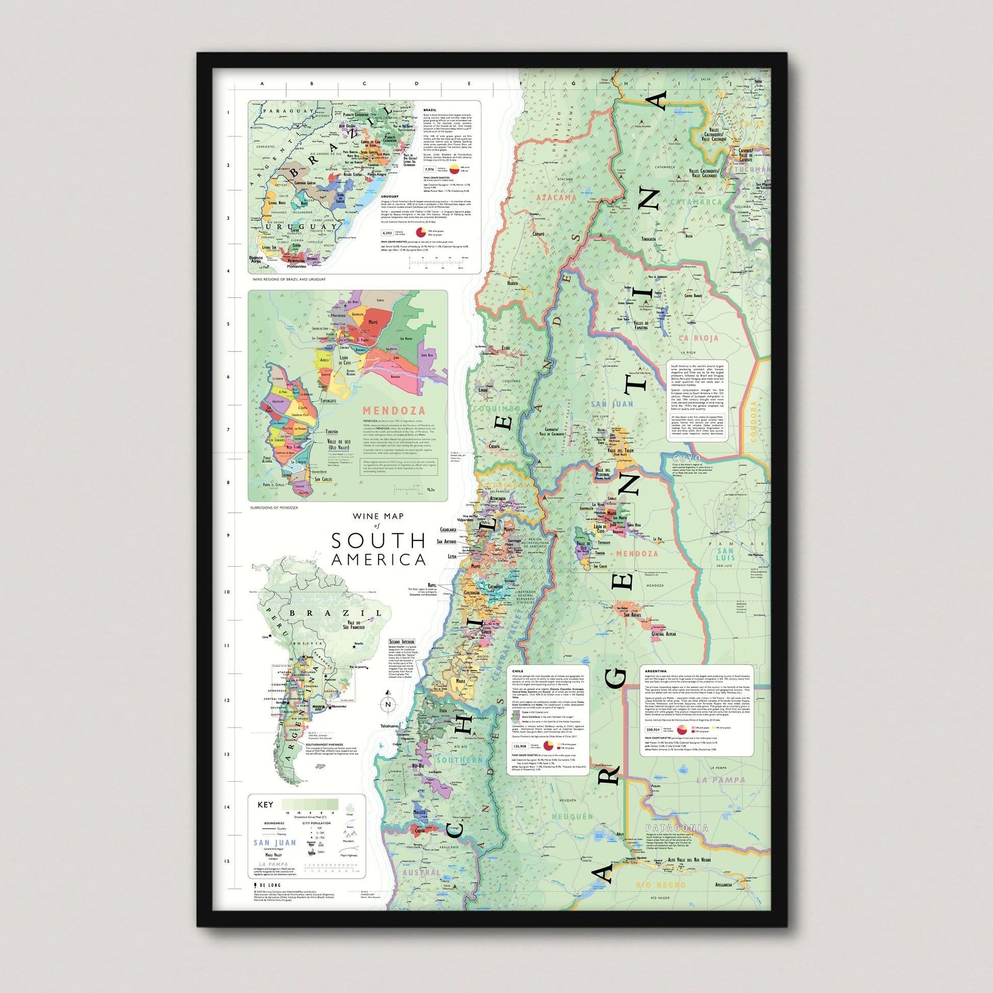 Comprend : toutes les régions viticoles d'Argentine, du Chili, de l'Uruguay et du Brésil ; carte détaillée de Mendoza.