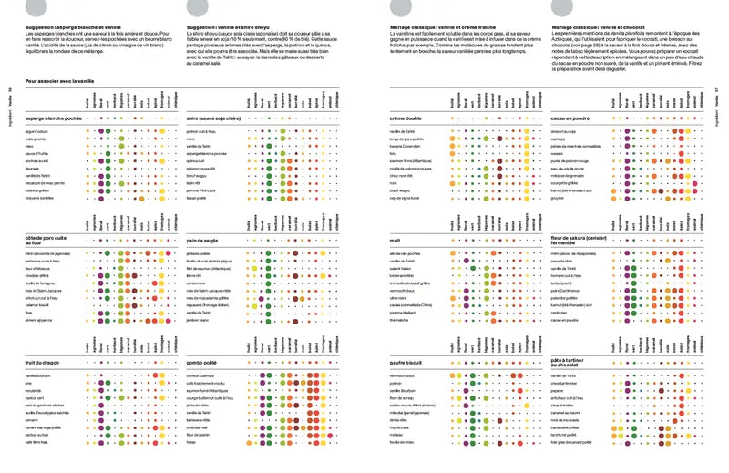 Ce livre décrit pourquoi les mariages d’ingrédients que nous maîtrisons et qui nous plaisent, que nous connaissons et aimons, fonctionnent si bien (fraises + chocolat), mais ouvre aussi un monde nouveau d’associations délicieuses (fraises + parmesan) qui vont transformer notre façon de cuisiner et de manger. Ce livre explique scientifiquement le mariage des saveurs et propose dix fois plus de combinaisons que tous les autres titres existant sur le sujet. Il est appelé à devenir LA référence en la matière, et un classique pour celles et ceux que l’art de bien manger passionne.