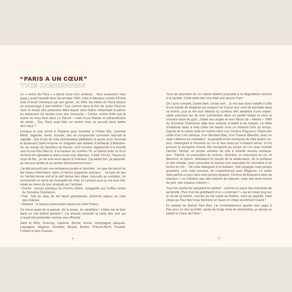 « Ce livre est un peu la carte d’identité du Bistrot Paul Bert. Il tente d’expliquer comment d’un projet au départ strictement professionnel nous sommes arrivés, Gwen et moi, à en faire un lieu si particulier.